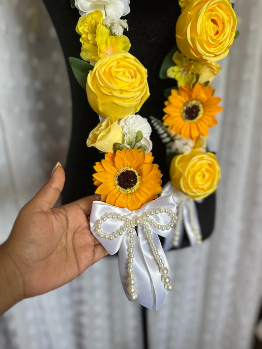 Floral Graduation Lei - Sunflower & Yellow Florall Graduation Lei - Pearl Neckline Detail